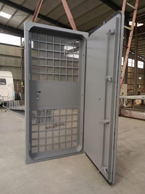 門框:一般由槽鋼和工字鋼組合而成的框架結構,與墻體連接,為門扇提供支撐和固定,門體的穩定性和承壓能力。